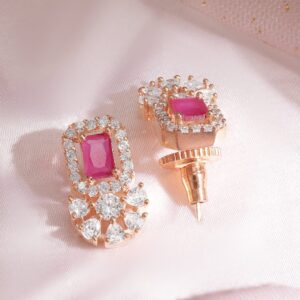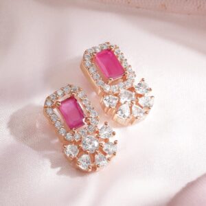 Earrings : Rose gold and pink floral studs, rose gold-plated, has zircon Secured with a post and back Occasion : Bring your style to a whole new level with this handcrafted piece of jewellery. When you’re celebrating a special Occasion : – a birthday, wedding, or personal milestone – this piece adds that extra something that makes us feel special and looking our best. Material : & Care Dimension : Length: 1.6 cm Width: 1 cm Material :Brass Weight : 5.48g Net Qnty : 1 Pair Earrings Care Label : It is advisable to avoid contact with water and organic chemicals i.e. perfume sprays. Store jewellery in airtight box. After use, wipe the jewellery with soft cotton cloth.
