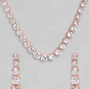 It’s a Necklace Set fit for the queens! Exude the royal vibe with this stone studded Necklace Set. Consisting of a necklace, matching earrings, this Necklace Set is crafted from gold-plated brass, stones and beads. Occasion : Bring your style to a whole new level with this handcrafted piece of jewellery. When you’re celebrating a special Occasion : – a birthday, wedding, or personal milestone – this piece adds that extra something that makes us feel special and looking our best. Material & Care Dimension :Necklace: 41.6 cm; Earrings: 3.2¬†cm Material :¬†Brass Care Label : It is advisable to avoid contact with water and organic chemicals i.e. perfume sprays. Store jewellery in airtight box. After use, wipe the jewellery with soft cotton cloth