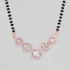 Sometimes a necklace makes an outfit. At times its just a classic design for everyday wear Occasion : Bring your style to a whole new level with this handcrafted piece of jewellery. When you’re celebrating a special Occasion : – a birthday, wedding, or personal milestone – this piece adds that extra something that makes us feel special and looking our best. Material & Care Dimension : Length 49 cm; Width 3.7 cm: Material : Brass, Beads Collection : AD(Gold) Weight : 15g Net Qnty : 1 Mangalsutra Care Label : It is advisable to avoid contact with water and organic chemicals i.e. perfume sprays. Store jewellery in airtight box. After use, wipe the jewellery with soft cotton cloth.