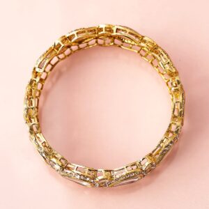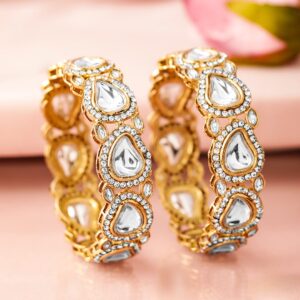 Bangle : Discover the elegance of Set of 2 18K Mehandi Gold-Plated Crystal White CubicZirconia Studded Premium Bangle. This piece combines quality craftsmanship with a timeless design, making it perfect for any occasion. Elevate your style effortlessly and enjoy compliments on your refined taste. A must-have addition to your jewelry collection. Occasion : Bring your style to a whole new level with this handcrafted piece of jewellery. When you’re celebrating a special Occasion : – a birthday, wedding, or personal milestone – this piece adds that extra something that makes us feel special and looking our best. Material : & Care Material :Brass Weight : 67.96g Net Qnty : 2 Bangles Care Label : It is advisable to avoid contact with water and organic chemicals i.e. perfume sprays. Store jewellery in airtight box. After use, wipe the jewellery with soft cotton cloth.