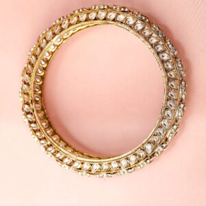 Bangle : Discover the elegance of Set of 2 18K Mehandi Gold-Plated Kundan & Cubic Zirconia Studded Designer Bangles. This piece combines quality craftsmanship with a timeless design, making it perfect for any occasion. Elevate your style effortlessly and enjoy compliments on your refined taste. A must-have addition to your jewelry collection. Occasion : Bring your style to a whole new level with this handcrafted piece of jewellery. When you’re celebrating a special Occasion : – a birthday, wedding, or personal milestone – this piece adds that extra something that makes us feel special and looking our best. Material : & Care Material :Brass Weight : 70.8g N et Qnty : 2 Bangles Care Label : It is advisable to avoid contact with water and organic chemicals i.e. perfume sprays. Store jewellery in airtight box. After use, wipe the jewellery with soft cotton cloth.