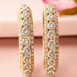 Set of 2 18K Mehandi Gold-Plated Kundan & Cubic Zirconia Studded Designer Bangles – 2.6