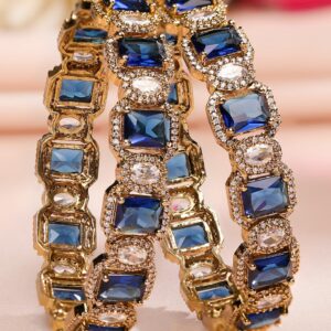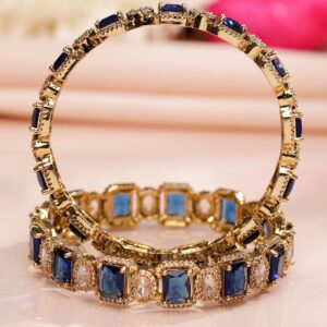 Be the first to review “Set of 2 22K Gold-Plated Blue Sapphire & White Cubic Zirconia Studded Premium Bangles – 2.4”