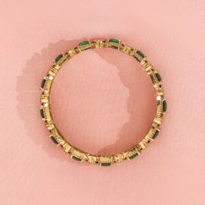 Bangle : Discover elegance with the Gold-Plated design, meticulously crafted for those who cherish luxury. This piece features Ruby and Emerald stones for an eye-catching sparkle, making it perfect for special occasions. With a blend of high-quality materials and exquisite design, it promises both durability and style. The versatile look can complement a variety of outfits, adding a touch of sophistication. A must-have for enhancing your accessory collection with timeless elegance. Occasion : Bring your style to a whole new level with this handcrafted piece of jewellery. When you’re celebrating a special Occasion : – a birthday, wedding, or personal milestone – this piece adds that extra something that makes us feel special and looking our best. Material : & Care Dimension : Length : 2.6 size, Width: 2.6 size Material :Brass Care Label : It is advisable to avoid contact with water and organic chemicals i.e. perfume sprays. Store jewellery in airtight box. After use, wipe the jewellery with soft cotton cloth.