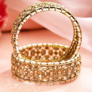 Set of 2, 22K Gold Plated Kundan & CZ Studded & Pearl Beaded Handcrafted Bangles – 2.8