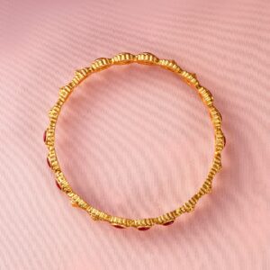 Bangle : Discover elegance with the Gold-Plated design, meticulously crafted for those who cherish luxury. This piece features Ruby and Emerald stones for an eye-catching sparkle, making it perfect for special occasions. With a blend of high-quality materials and exquisite design, it promises both durability and style. The versatile look can complement a variety of outfits, adding a touch of sophistication. A must-have for enhancing your accessory collection with timeless elegance. Occasion : Bring your style to a whole new level with this handcrafted piece of jewellery. When you’re celebrating a special Occasion : – a birthday, wedding, or personal milestone – this piece adds that extra something that makes us feel special and looking our best. Material : & Care Dimension : Length : 2.6 size, Width: 2.6 size Material :Brass Care Label : It is advisable to avoid contact with water and organic chemicals i.e. perfume sprays. Store jewellery in airtight box. After use, wipe the jewellery with soft cotton cloth.