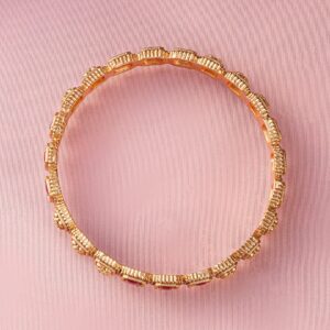 Bangle : Discover elegance with the Gold-Plated design, meticulously crafted for those who cherish luxury. This piece features Ruby and Emerald stones for an eye-catching sparkle, making it perfect for special occasions. With a blend of high-quality materials and exquisite design, it promises both durability and style. The versatile look can complement a variety of outfits, adding a touch of sophistication. A must-have for enhancing your accessory collection with timeless elegance. Occasion : Bring your style to a whole new level with this handcrafted piece of jewellery. When you’re celebrating a special Occasion : – a birthday, wedding, or personal milestone – this piece adds that extra something that makes us feel special and looking our best. Material : & Care Material: Brass Net Weight: 52, 93 Gram Net Quantity: 2 Bangles Care Label: It is advisable to avoid contact with water and organic chemicals i.e. perfume sprays. Store jewellery in airtight box. After use, wipe the jewellery with soft cotton cloth.