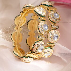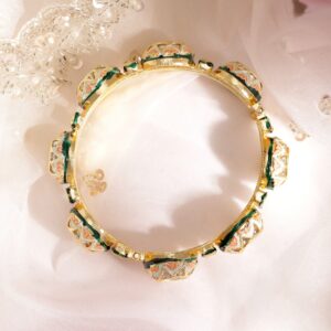 Adorn your wrist with finest handcrafted gold plated bangles studded with color stones. Pair it up and flaunt with your ethnic attire. Occasion : Bring your style to a whole new level with this handcrafted piece of jewelry. When you’re celebrating a special Occasion : – a birthday, wedding, or personal milestone – this piece adds that extra something that makes us feel special and looking our best. Material & Care Material : Brass Care Label : It is advisable to avoid contact with water and organic chemicals i.e. perfume sprays. Store jewelry in airtight box
