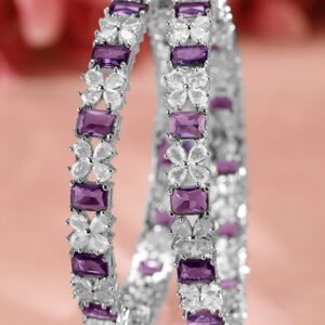 Bangle : This exquisite piece, ‘ Set Of 2 Rhodium-Plated Sapphire & CZ Studded Bangles’, is a perfect blend of elegance and craftsmanship. Designed to captivate, it reflects timeless beauty and intricate detailing. Ideal for special occasions, this accessory adds a touch of sophistication to your look. Made with high-quality materials, it guarantees durability and comfort. Elevate your style with this stunning creation, making you stand out effortlessly. Occasion : Bring your style to a whole new level with this handcrafted piece of jewellery. When you’re celebrating a special Occasion : – a birthday, wedding, or personal milestone – this piece adds that extra something that makes us feel special and looking our best. Material : & Care Material: Brass Net Weight: 44 Gram Net Quantity: 2 Bangles Care Label : It is advisable to avoid contact with water and organic chemicals i.e. perfume sprays. Store jewellery in airtight box. After use, wipe the jewellery with soft cotton cloth.