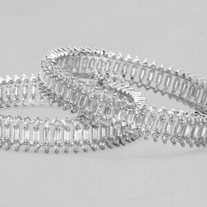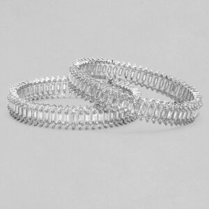 Adorn your wrist with finest handcrafted gold plated bangles studded with color stones. Pair it up and flaunt with your ethnic attire. Occasion : Bring your style to a whole new level with this handcrafted piece of jewellery. When you’re celebrating a special Occasion : – a birthday, wedding, or personal milestone – this piece adds that extra something that makes us feel special and looking our best. Material & Care Material : Brass Collection : AD(Silver)