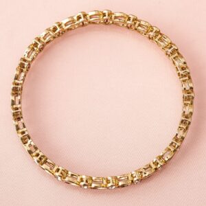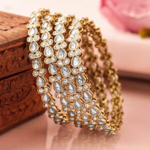 Bangle : Elevate your ethnic ensemble with ‘ set of 4 bangles. Crafted in 18K Mehandi gold plating, these bangles feature intricate Kundan & cubic zirconia stones for a regal, timeless look. Occasion : Bring your style to a whole new level with this handcrafted piece of jewellery. When you’re celebrating a special Occasion : – a birthday, wedding, festive or personal milestone – this piece adds that extra something that makes us feel special and looking our best. Material : & Care Dimension : Net Weight: 68.48 g Net Quantity: 4 Bangles Material : Brass Care Label : It is advisable to avoid contact with water and organic chemicals i.e. perfume sprays. Store jewellery in airtight box. After use, wipe the jewellery with soft cotton cloth.