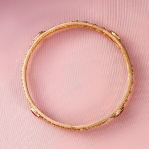 Bangle : Discover elegance with the Gold-Plated design, meticulously crafted for those who cherish luxury. This piece features Ruby and Emerald stones for an eye-catching sparkle, making it perfect for special occasions. With a blend of high-quality materials and exquisite design, it promises both durability and style. The versatile look can complement a variety of outfits, adding a touch of sophistication. A must-have for enhancing your accessory collection with timeless elegance. Occasion : Bring your style to a whole new level with this handcrafted piece of jewellery. When you’re celebrating a special Occasion : – a birthday, wedding, or personal milestone – this piece adds that extra something that makes us feel special and looking our best. Material : & Care Material: Brass Net Weight: 43,88 Gram Net Quantity: 4 Bangles Care Label: It is advisable to avoid contact with water and organic chemicals i.e. perfume sprays. Store jewellery in airtight box. After use, wipe the jewellery with soft cotton cloth.