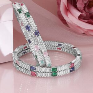 Set of 4 Rhodium-Plated Multicolor AD and Cubic Zirconia Studded Premium Bangles – 02-Jun