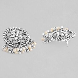 Silver-Plated & Beige Oxidised Contemporary Stud Earrings – Silver