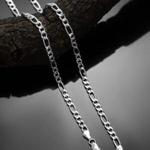 Necklace and Chains : This silver-plated Figaro chain necklace features alternating long and short links, creating a timeless and bold look. Its polished finish adds a refined yet edgy appeal, perfect for modern styling. Occasion : Bring your style to a whole new level with this handcrafted piece of jewellery. When you’re celebrating a special Occasion : – a birthday, wedding, or personal milestone – this piece adds that extra something that makes us feel special and looking our best. Material : & Care Dimension : Size : Length : 30 cm, Width : 1 cm Net Quantity : 1 Necklace and Chains Net Weight: 48.30 g Material :Brass Care Label : It is advisable to avoid contact with water and organic chemicals i.e. perfume sprays. Store jewellery in airtight box. After use, wipe the jewellery with soft cotton cloth.