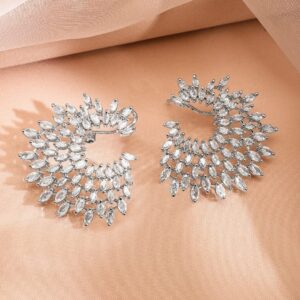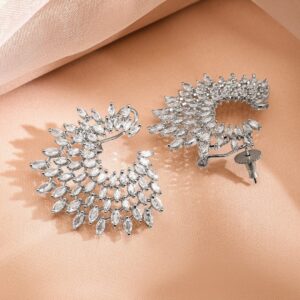 These silver-plated spiral stud earrings feature sparkling cubic zirconia stones in a handcrafted design. The intricate and bold design makes them a standout accessory for glamorous occasions. Occasion : Bring your style to a whole new level with this handcrafted piece of jewellery. When you’re celebrating a special Occasion : – a birthday, wedding, parties, festives or personal milestone – this piece adds that extra something that makes us feel special and looking our best. Material : & Care Dimension : Length 4.5 cm Material : Brass Care Label : It is advisable to avoid contact with water and organic chemicals i.e. perfume sprays. Store jewellery in airtight box. After use, wipe the jewellery with soft cotton cloth.
