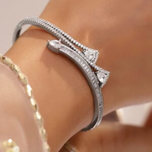 Rhodium-Plated AAA Cubic Zirconia Studded Handcrafted Openable Premium Bracelet