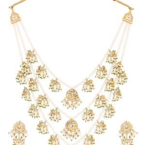 22k Gold plated triple layer pearl beaded kundan studded Jewellery Set – Gold