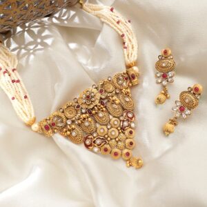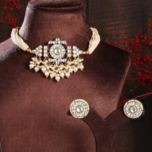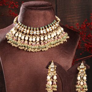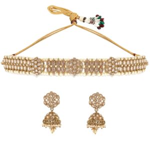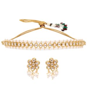 Luxurious 22K Gold Plated Pearl beaded Kundan Choker jewelry Set – Gold