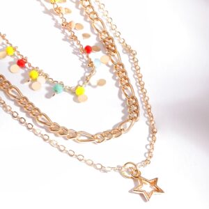18K Gold Plated Multicolor Beaded Star Charm Multi-Layered Necklace