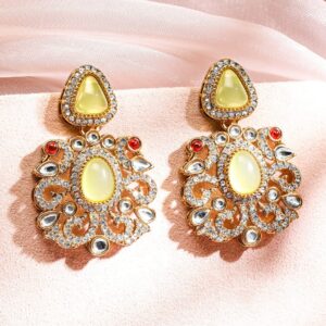 18K Gold-Plated Yellow Sapphire & White Zirconia Gemstone Studded Chandelier Earrings for Women