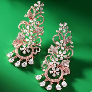 18k Rose Gold Plated Zirconia Studded Chandelier Earrings – Rose Gold