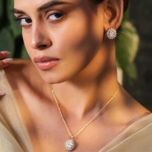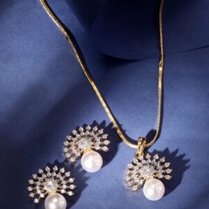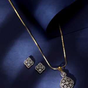 18KT Gold Plated High Quality Cubic Zirconia Studded Pendent Set – Gold