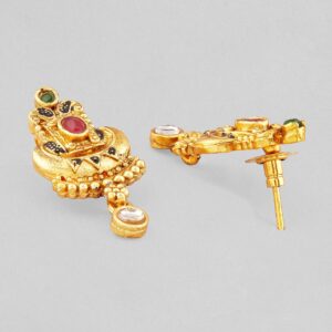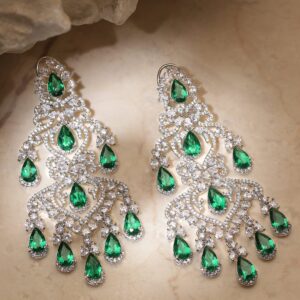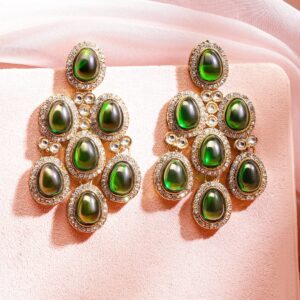 22K Gold Plated Zirconia Studded Antique Light Gold-Tone Premium Chandelier Earring – Green