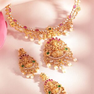 Gold-Plated multicolor CZ studded temple Jewellery Set – Gold