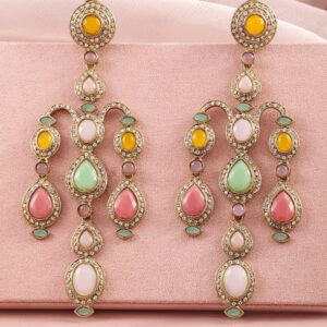 22K Mehandi Gold-Plated Multicolor Gemstone & Zirconia Studded Chandelier Earrings
