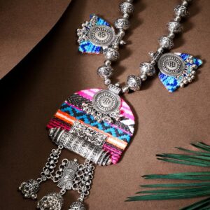 Oxidized Silver Plated Beaded & Threaded Statement Long Necklace – Multicolor