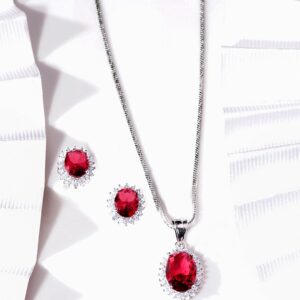 Rhodium plated Ruby Red zirconia Studded Oval Pendant Set – Grren