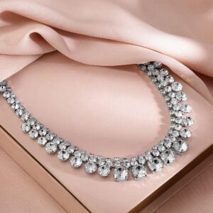 Rhodium-Plated White AAA Cubic Zirconia Studded Premium Choker Jewellery Set for Women – White
