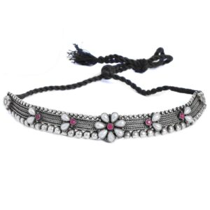 Silver Plated Handcrafted Oxidised Floral Choker – Silver