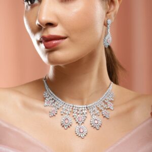 Rhodium-Plated White AD & Cubic Zirconia Studded Premium Necklace Jewellery Set – Silver