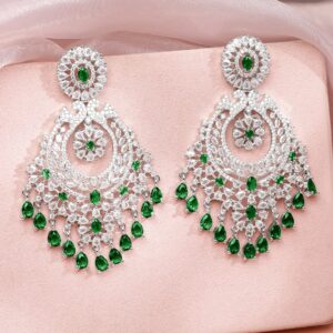 Emerald Elegance Green and Silver AD Earring – Green