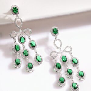 Rhodium Plated Emerald Green & Cubic Zirconia Studded Chandelier Earrings – Silver