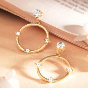 18K Gold-Plated Bold Geometric Loop Shoulder Duster Statement Earrings – Gold
