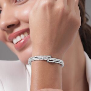 Set of 2 Rhodium-Plated Crystal White Cubic Zirconia Studded Premium Bangles – 2.4