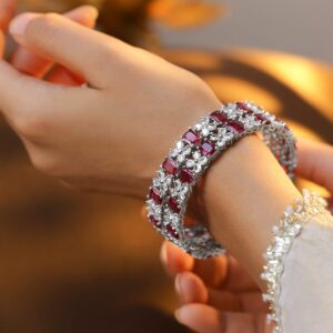 Set of 2 18K Gold-Plated Crystal White Cubic Zirconia & Ruby Red Stone Studded Bangles – 2.6