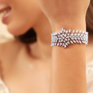 Rhodium Plated Marquise and Pear Crystal Cubic Zirconia Demi-Fine Luxury bracelet – Silver