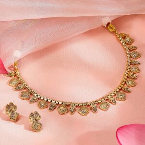 Rose Gold Plated Handcrafted AD Studded Necklace Set – Rose Gold