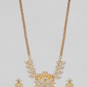 24K Gold-Plated Peacock Design AD-Studded Pearl Jewellery Set – Gold
