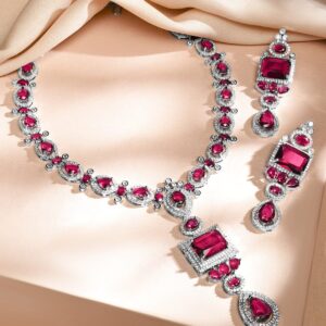 Rhodium-Plated Ruby Red AD & Cubic Zirconia Studded Necklace Set – Ruby Red