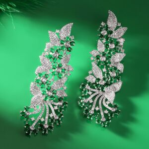 Rhodium-Plated Emerald Green & AAA Cubic Zirconia Floral Vine Statement Earrings – Silver::Green