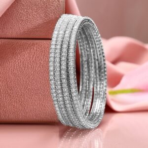 Set of 2 Rhodium-Plated White Cubic Zirconia Studded Classic Premium Bangles for Women – 02-Aug