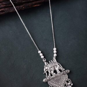 Silver Oxidised Handcrafted Elephant Pendant Necklace – Silver