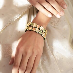 Set of 2, 24K Gold-Plated Handcrafted Kundan & Pearl Studded Meenakari Bangles – 02-Apr