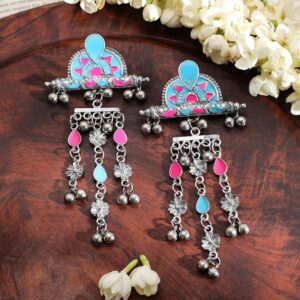Oxidized silver Plated ghungroo dangle statement Earrings – Silver