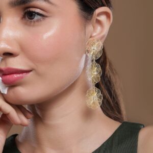 Gold Plated Cubic Zirconia Studded Floral Long Drop Earrings – Gold